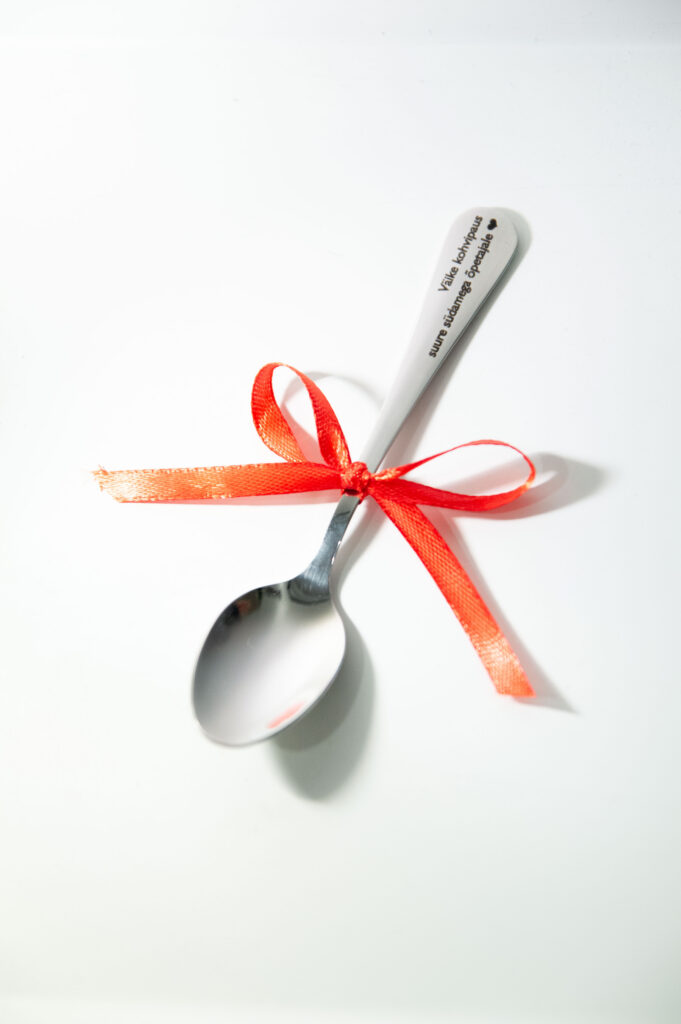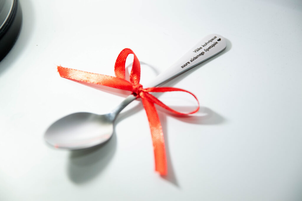 Nurmenuku Lauanõudes on nüüd saadaval uus ja südamlik toode – kvaliteetne roostevabast terasest lusikas sõnumiga „Väike kohvipaus suure südamega õpetajale 💛“.