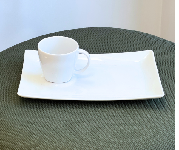 Portselanist piklik alus Gex, mille mõõtmed on 200 x 130 mm. Sobib kokku Lubiana valgest portselanist munatopsi või 90 ml Victoria tassiga.