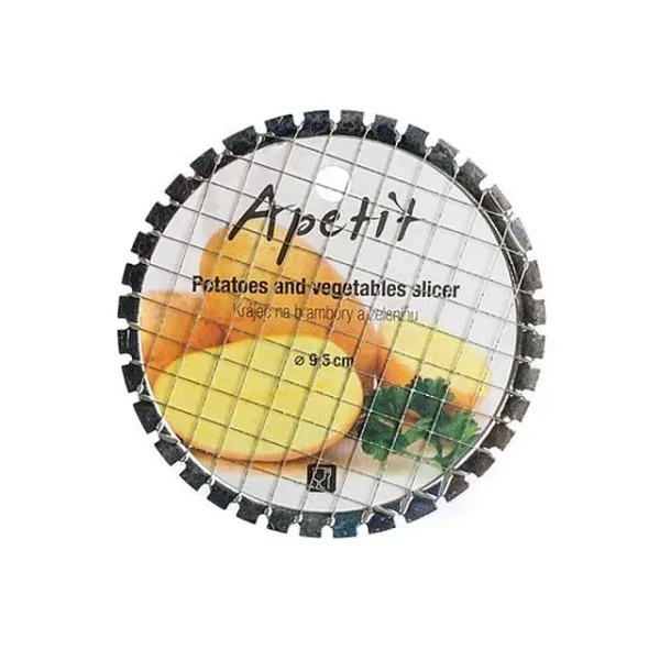 Juurviljahakkija läbimõõduga 95 mm on valmistatud roostevabast terasest ning hakitavate kuubikute suuruseks on 7 x 7 mm. Sobib kartulite ja teiste juurviljade hakkimiseks ja teeb erinevate salatite valmistamise kiireks ja mugavaks.