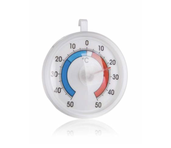Termomeeter mõõdab temperatuuri vahemikus –50 °C kuni +50 °C, võimaldades jälgida nii külmiku kui ka sügavkülmiku tööd. Selge ja hästi loetav skaala teeb temperatuuri kontrollimise kiireks ja mugavaks ning aitab hoida soovituslikke säilitustingimusi igapäevaselt.