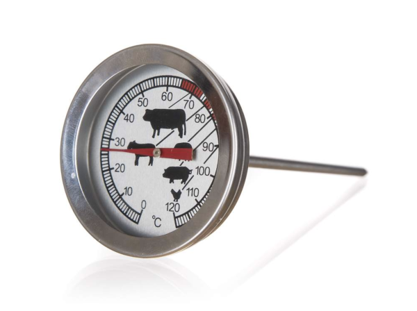 Termomeeteril on pikk sond ja selge näidik, mis võimaldab teil jälgida toidu sisetemperatuuri ning saavutada alati parima tulemuse.